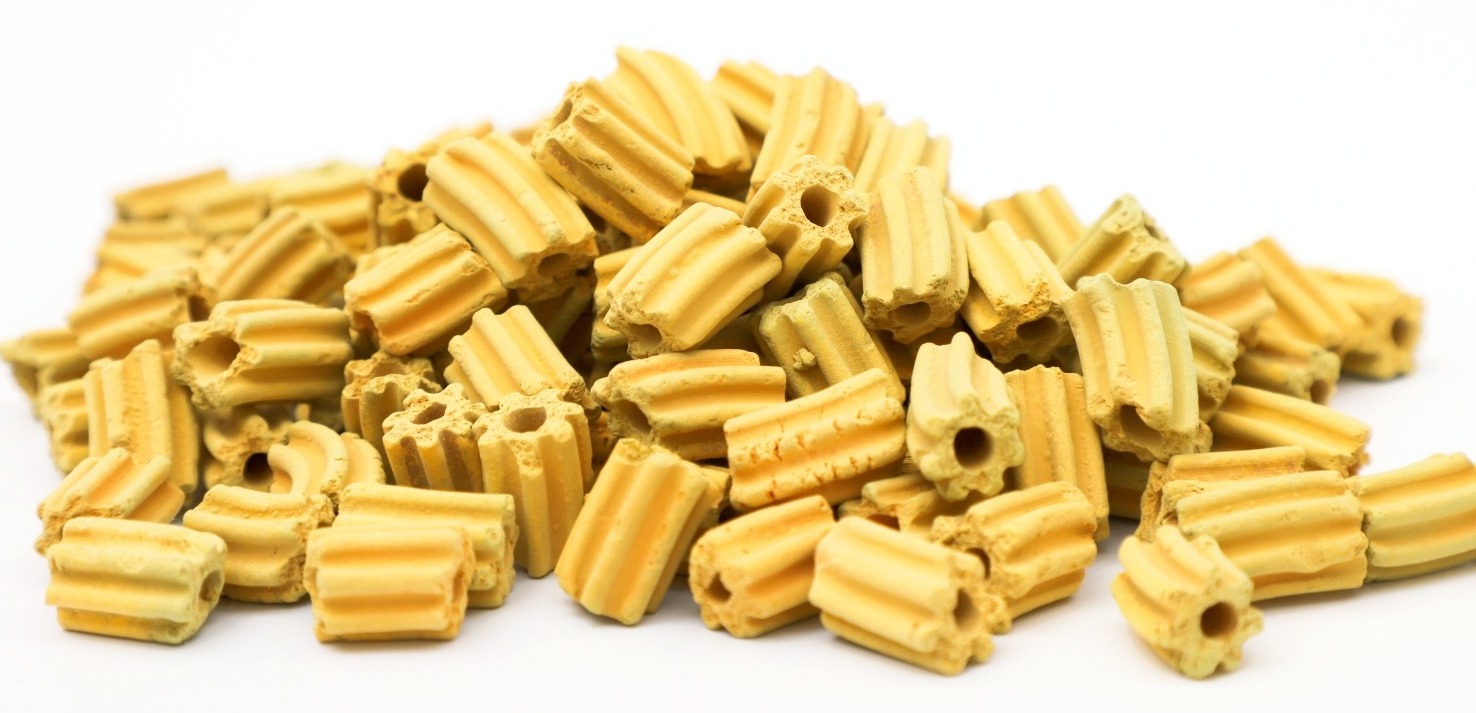 Les catalyseurs au vanadium Fitech sont généralement composés de V₂O₅ comme principal composant actif, associé à K₂SO₄ et à d'autres sels de métaux alcalins comme co-catalyseurs, déposés sur du sable de silice ou d'autres supports poreux. Le véritable centre actif du catalyseur Fitech n'est pas le V₂O₅ solide lui-même, mais un complexe d'oxyde de vanadium-sulfate fondu, formé avec le co-catalyseur à la température de réaction (généralement entre 400 et 600 °C). Ce film liquide recouvre la surface du support, assurant ainsi un excellent transfert de masse pour la réaction.