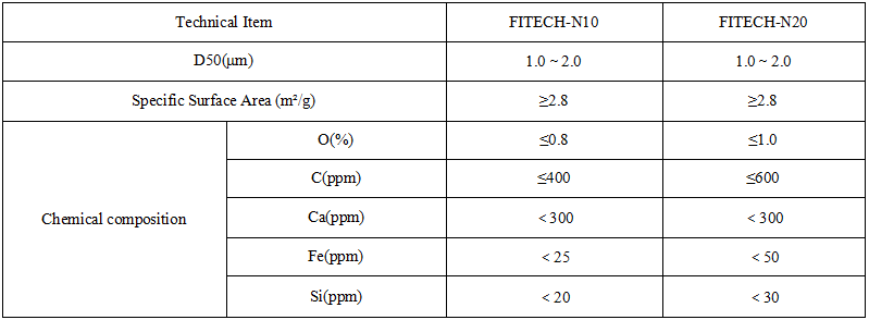 Haute pureté nitrure d'aluminium La poudre d'AlN se caractérise par une grande pureté, une granulométrie étroite, une forte aptitude au frittage et une faible teneur en carbone et en oxygène. Grâce à sa conductivité thermique élevée et à ses propriétés d'isolation électrique, elle est idéale pour les boîtiers électroniques et les céramiques de gestion thermique.